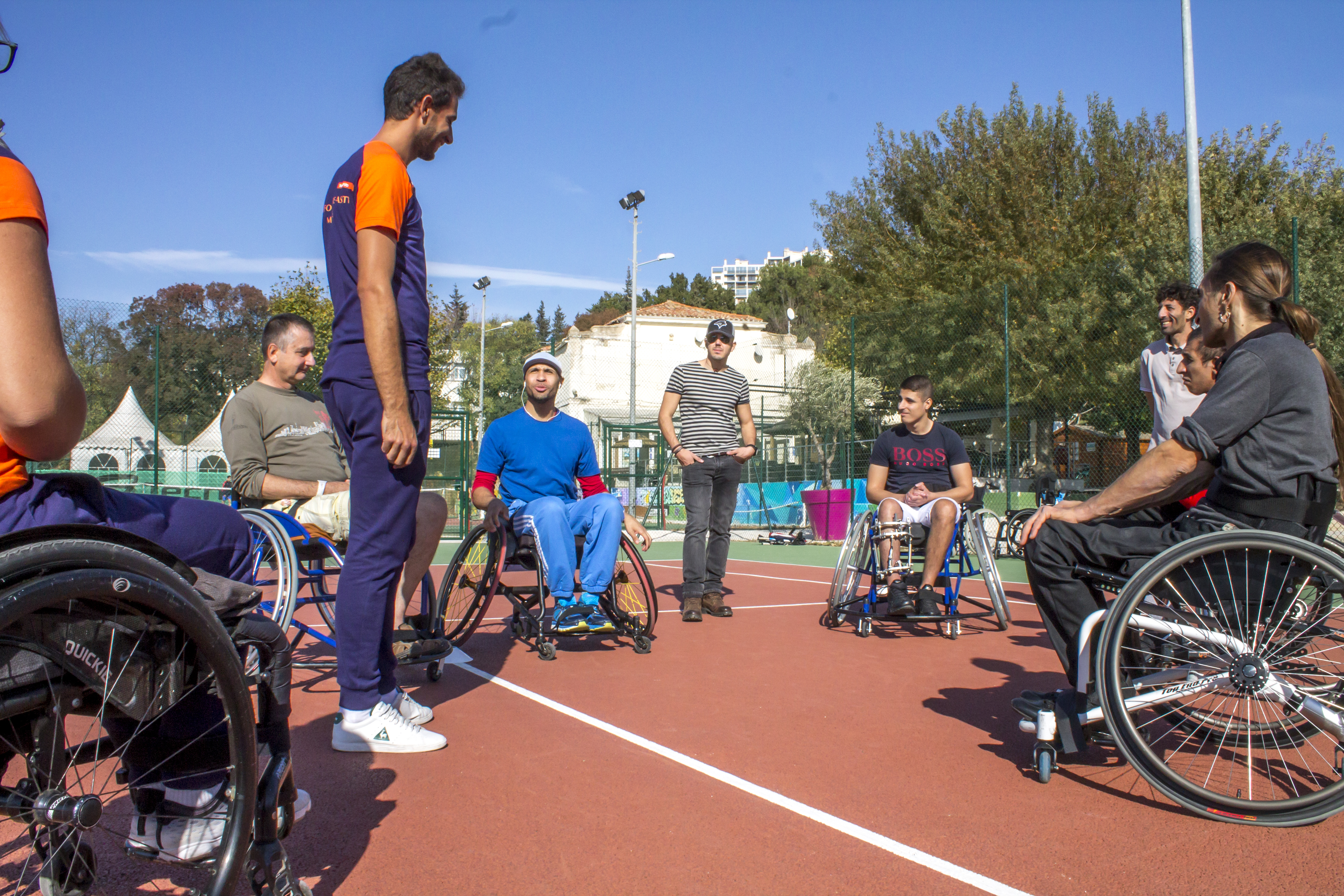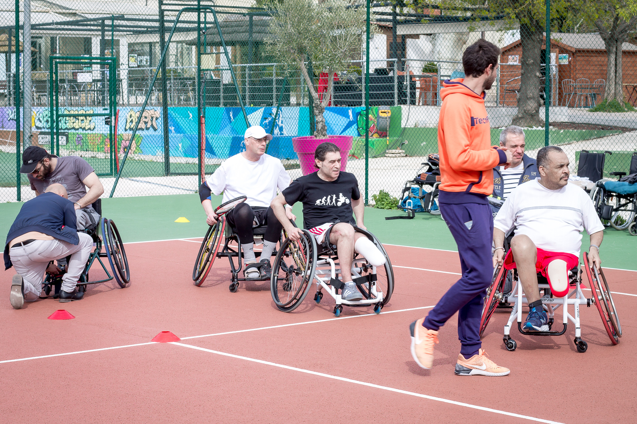 Initiation au Tennis en fauteuil du 27 avril 2018 au Tennis Club La Fourragère ASPTT lors du Championnat de France de Tennis en fauteuil par équipe, à Marseille (13) :